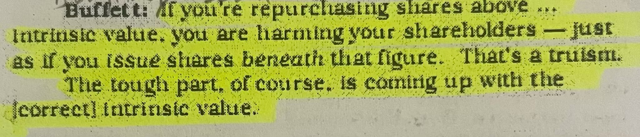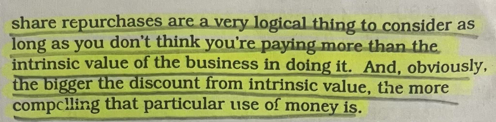 Buybacks. Stock repurchasesCalculated WagersMar 12, 2025ShareBuybacks. Excellent if bought back at <= 2/3 rd of intrinsic valueRepurchasing our own sharesShare repurchases. When?Buying back shares above intrinsic valueWonderful businesses repurchasing their shares appeal to us