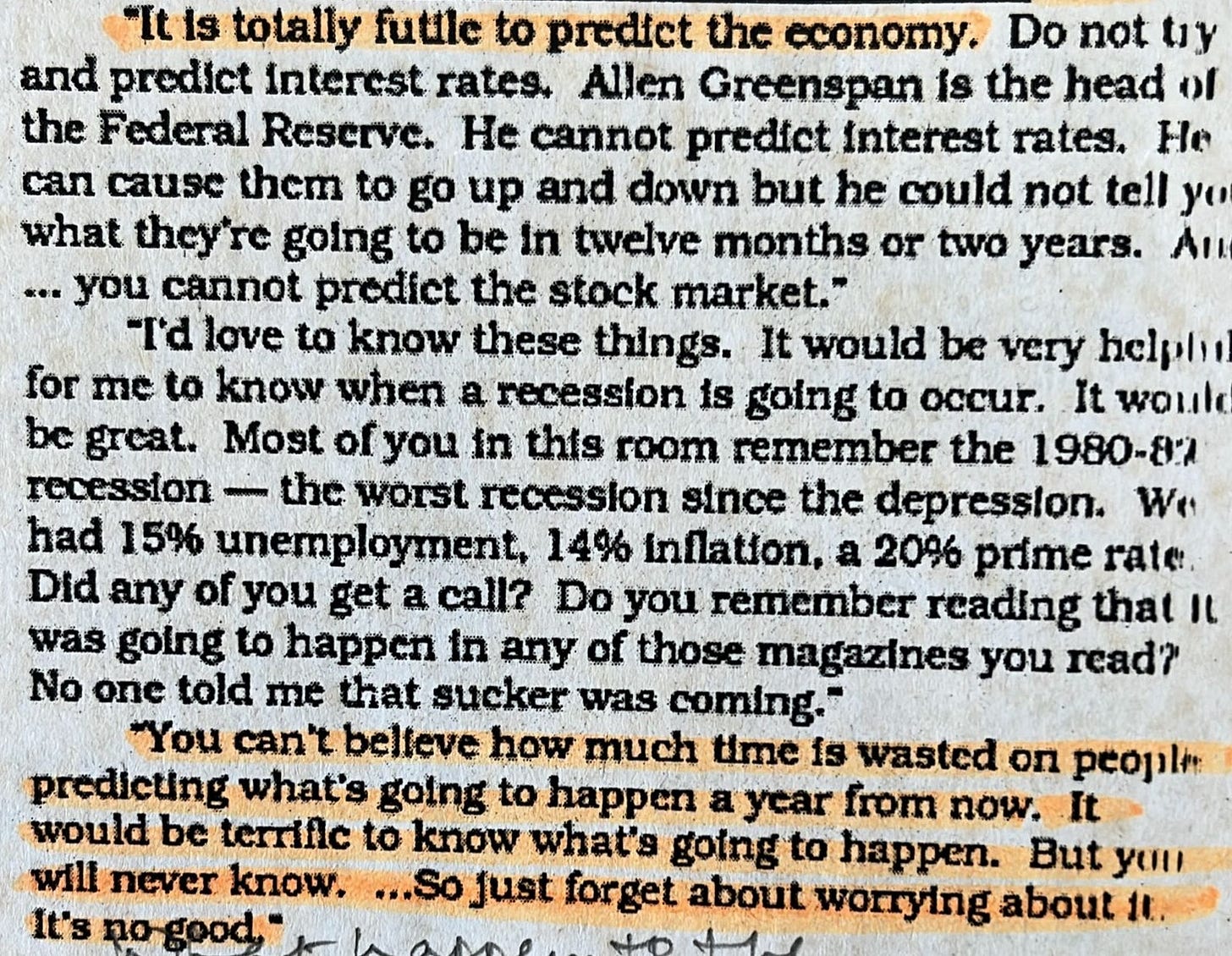 Totally futile to predict the economy (Peter Lynch May 1990)