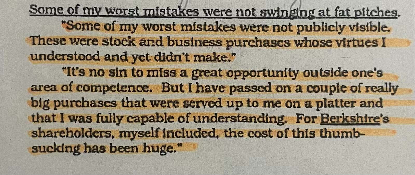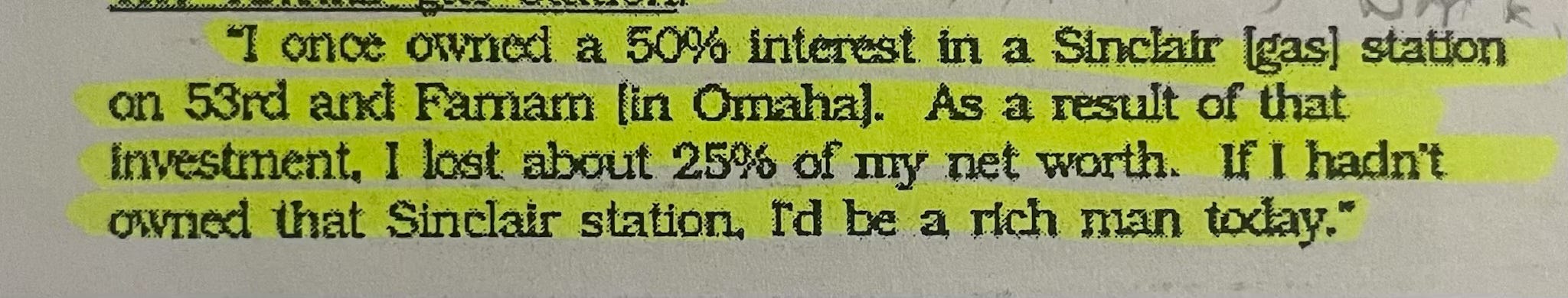 MistakesCalculated WagersMar 05, 20251ShareSinclair gas station. Buffett lost 25% of his networthInvesting in other countriesThumbsucking. A huge costEven Ben Graham had blind spotsTextile business taught us many lessons, the hard way